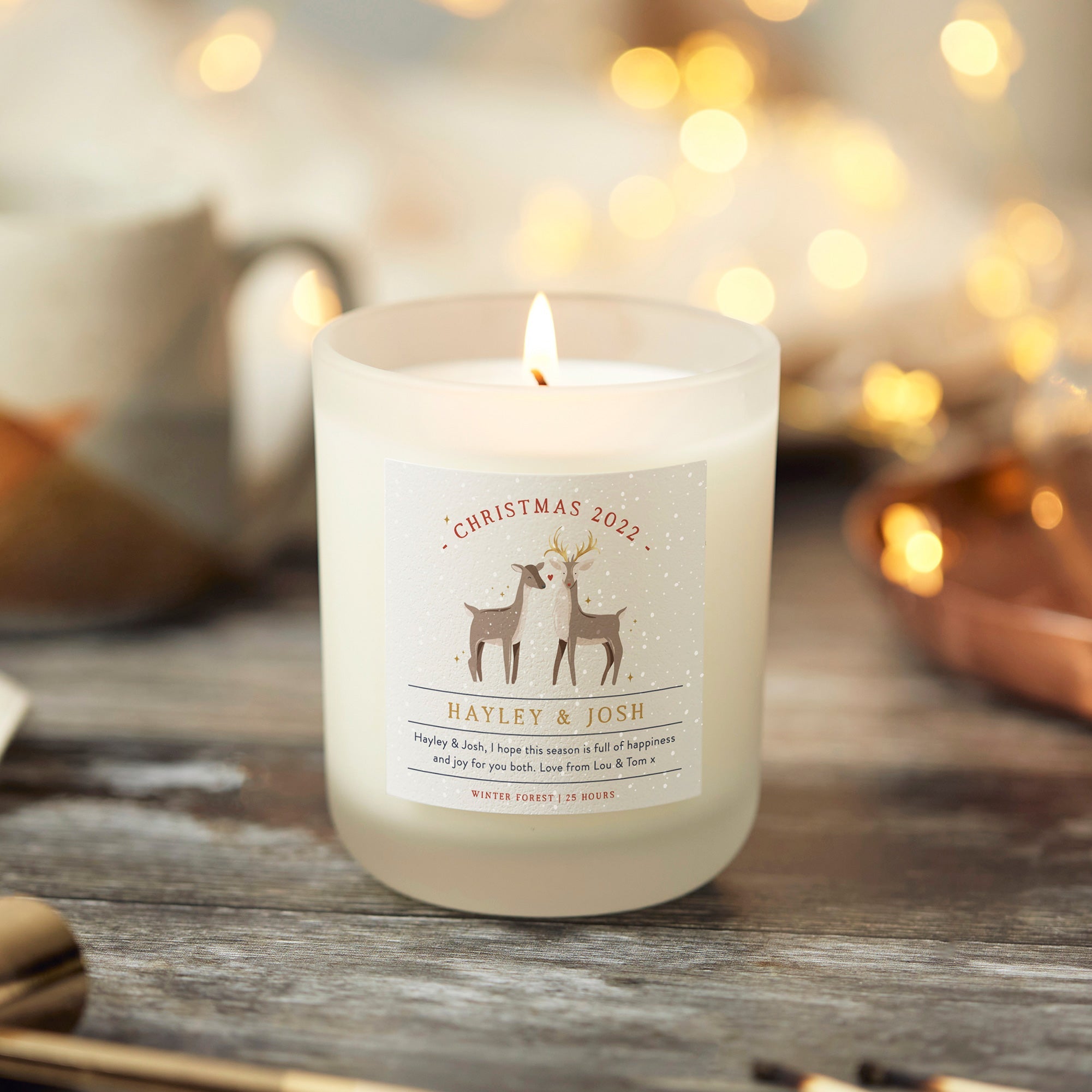 Celebrate the festive season and gift them a bespoke, hand poured candle from our Christmas Gifts collection. Whether it’s for a special someone, a friend, family member or work colleague, they will cherish their personalised candle from Kindred Fires. All of our designs are customisable - senders can include a name and a heartfelt holiday message to give it that merry touch. All of our elegant candles are made from soy wax, bestowing upon the recipient a sense of luxury each time they unwrap their Christmas gift and every time they light it. We offer an array of festive scents to choose from, each promising a wonderful throw that will fill the room with the warm, luxurious chosen aroma. Your loved ones will feel cherished and merry with their very own personalised, bespoke candle. Explore our Christmas Gifts range today and find the perfect present for the festive season.
