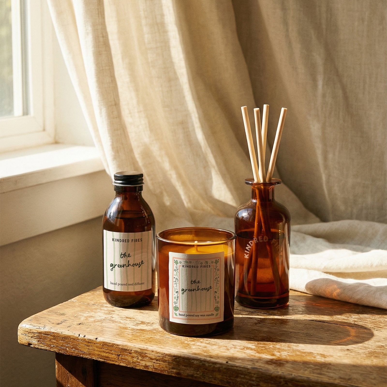 A bundle of our latest home fragrance, The Greenhouse, combining our soy wax candle with an elegant reed diffuser.