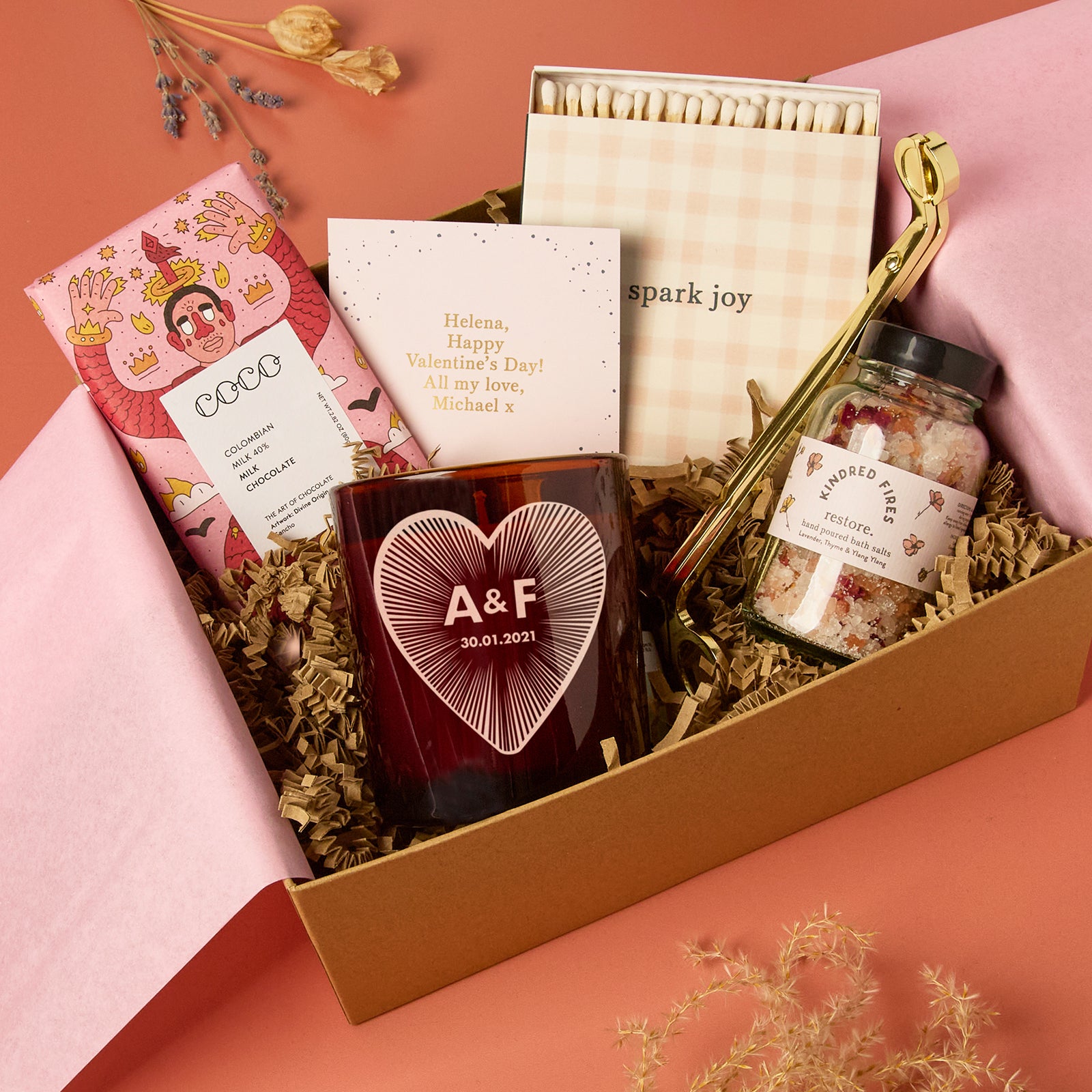 Elevate their Valentine’s Day gifting with our premium gift hamper. This premium hamper pairs artisan treats with a bespoke keepsake candle, making it a thoughtful way to celebrate your loved one on Valentine's Day.