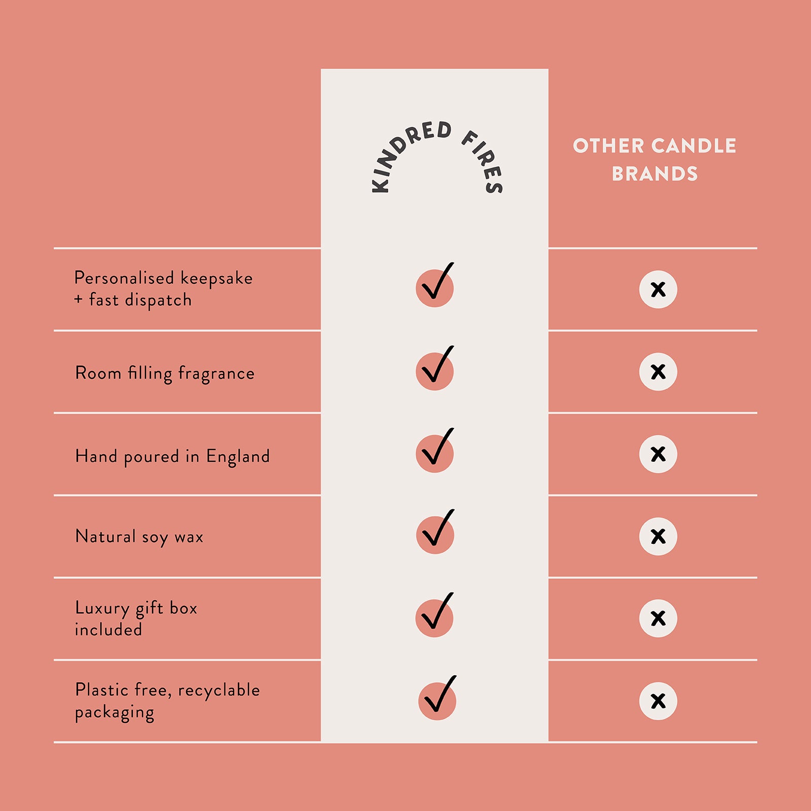 We offer the Kindred Fires Promise. If something’s not perfect — whether it’s a delay, a mix-up, or anything in between — speak to our team at hello@kindredfires.com and we’ll do everything we can to make it right.