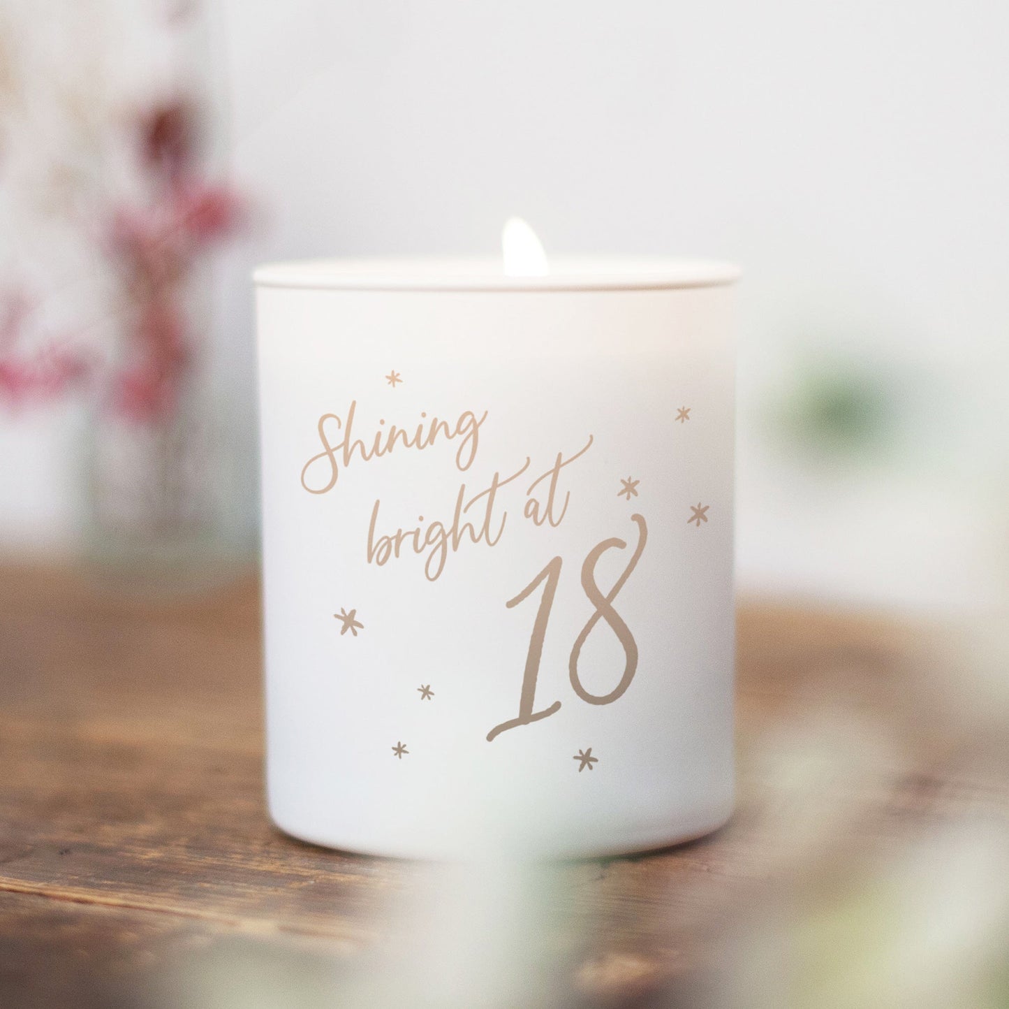 The matt finished glass candle features the words 'Shining Bright at …' with the recipient's age beneath. Scattered stars are delicately etched into the glass, along with your personal birthday message on the reverse. This lovely candle gift makes for a wonderful birthday keepsake!
