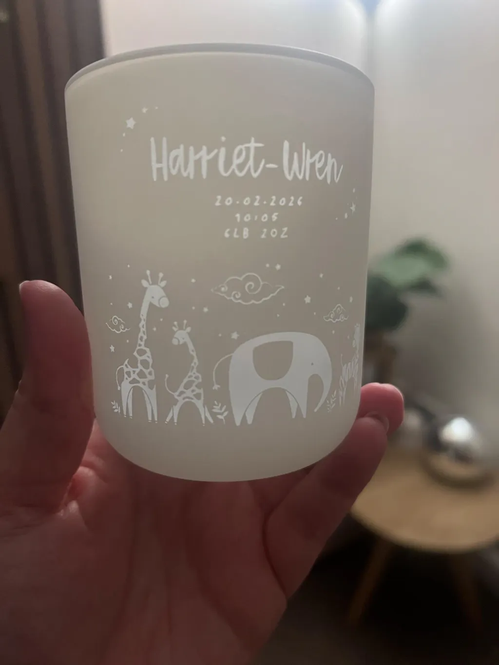 Absolutely beautiful item, so great that you can personalise the tea light holder and then have a personalised message on the back. I can’t believe how super fast they came too! Beautiful packaging, information, a pack of matches and Tealights with all branding on making it look extra special!!